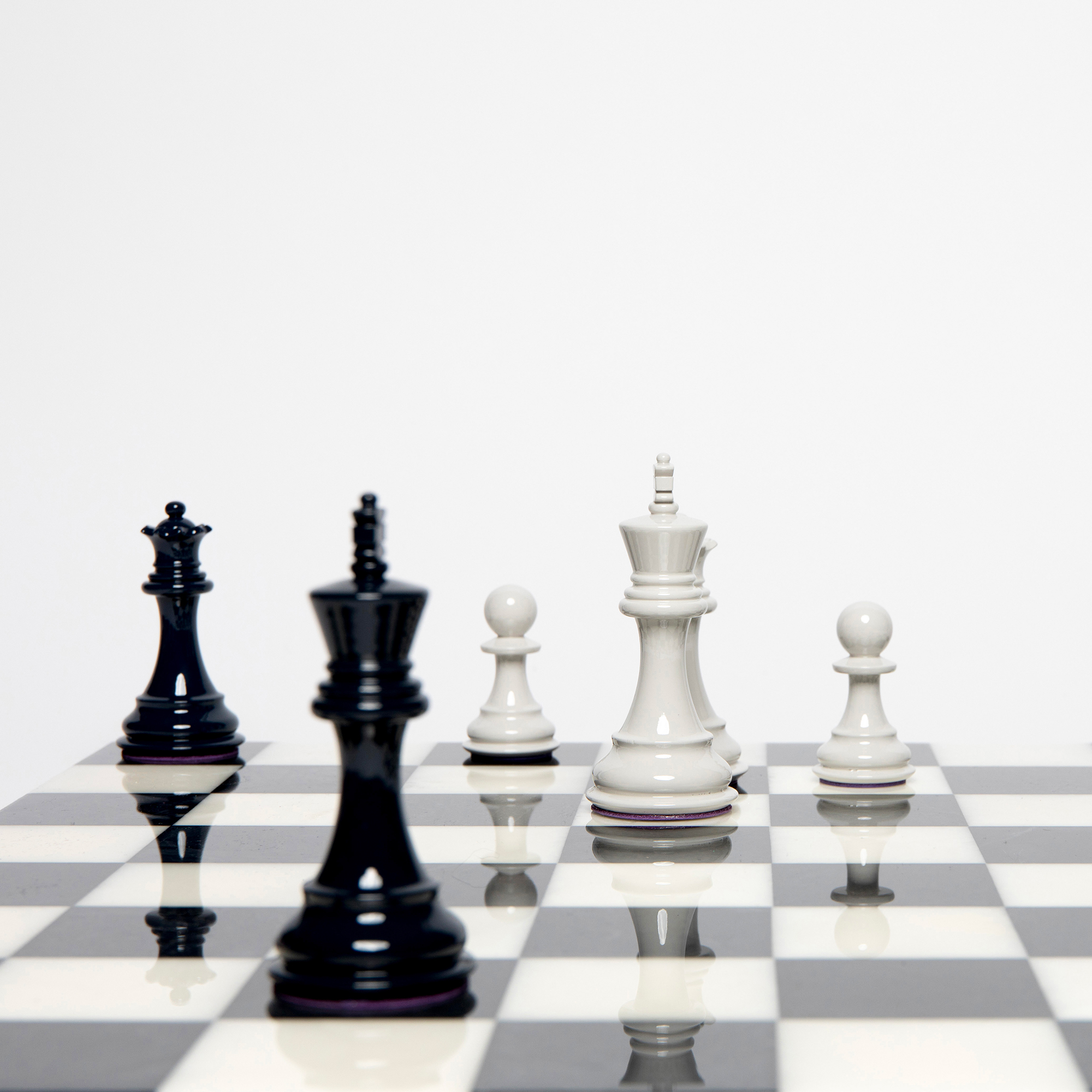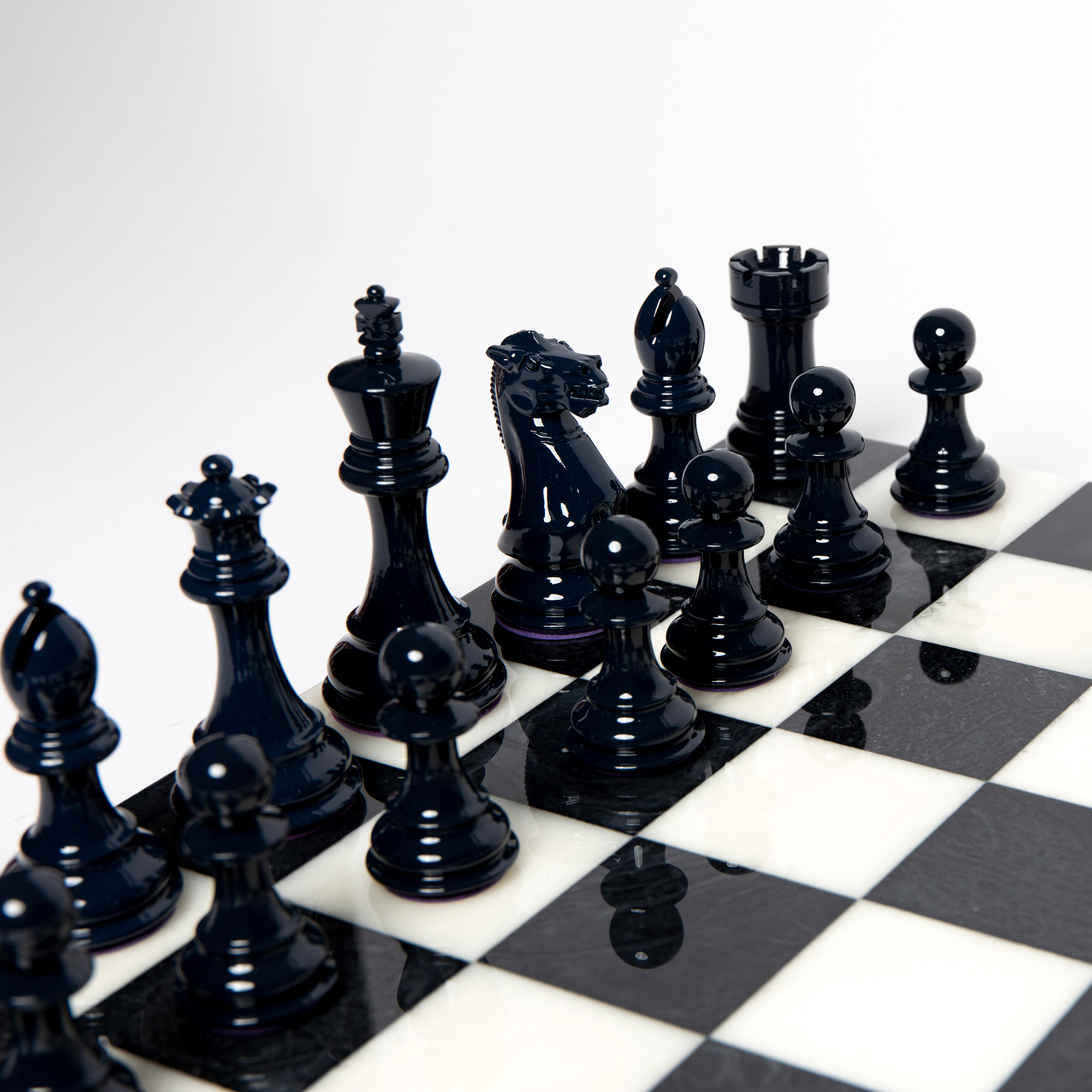 Uniting both the classic and contemporary, incorporating hand turned and carved Staunton inspired design chess pieces, featuring Purling's unique Knight design.