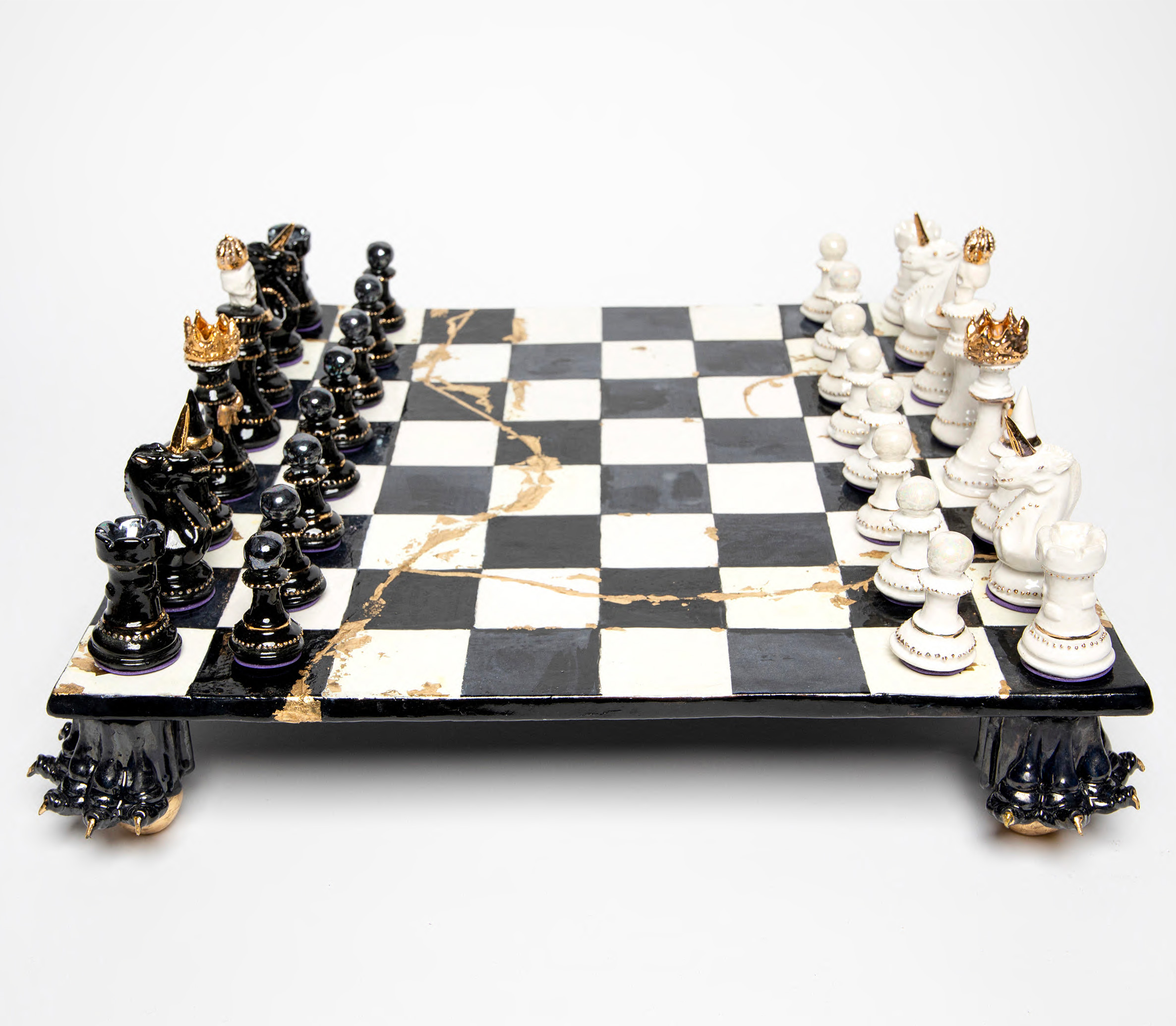 The two sides of the chess board connect together with sunken magnets, to produce a flush surface.